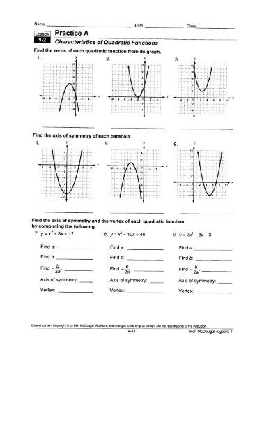 Web Algebra 1 8.2 Worksheet Characteristics Of Quadratic Functions Answers.